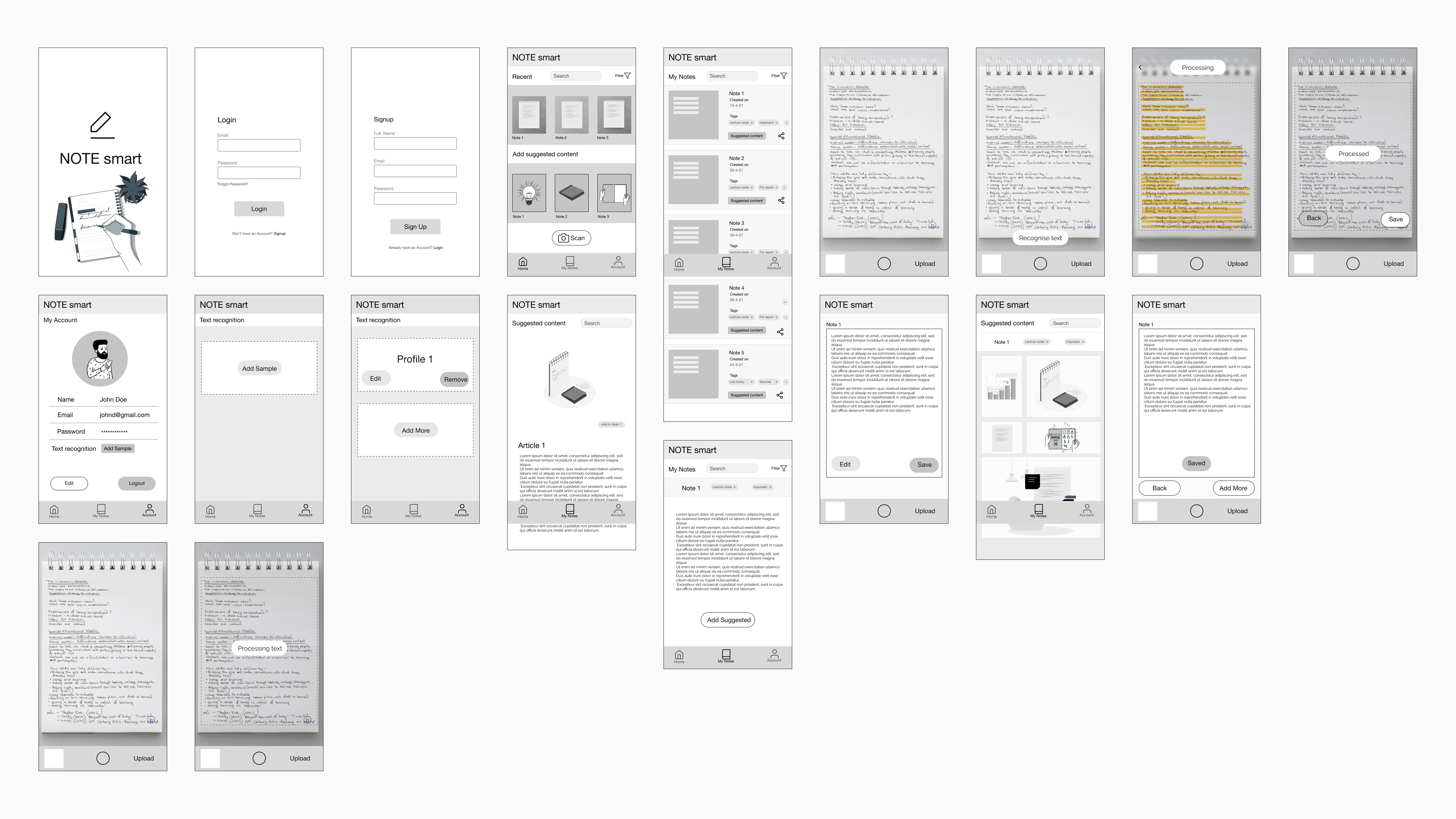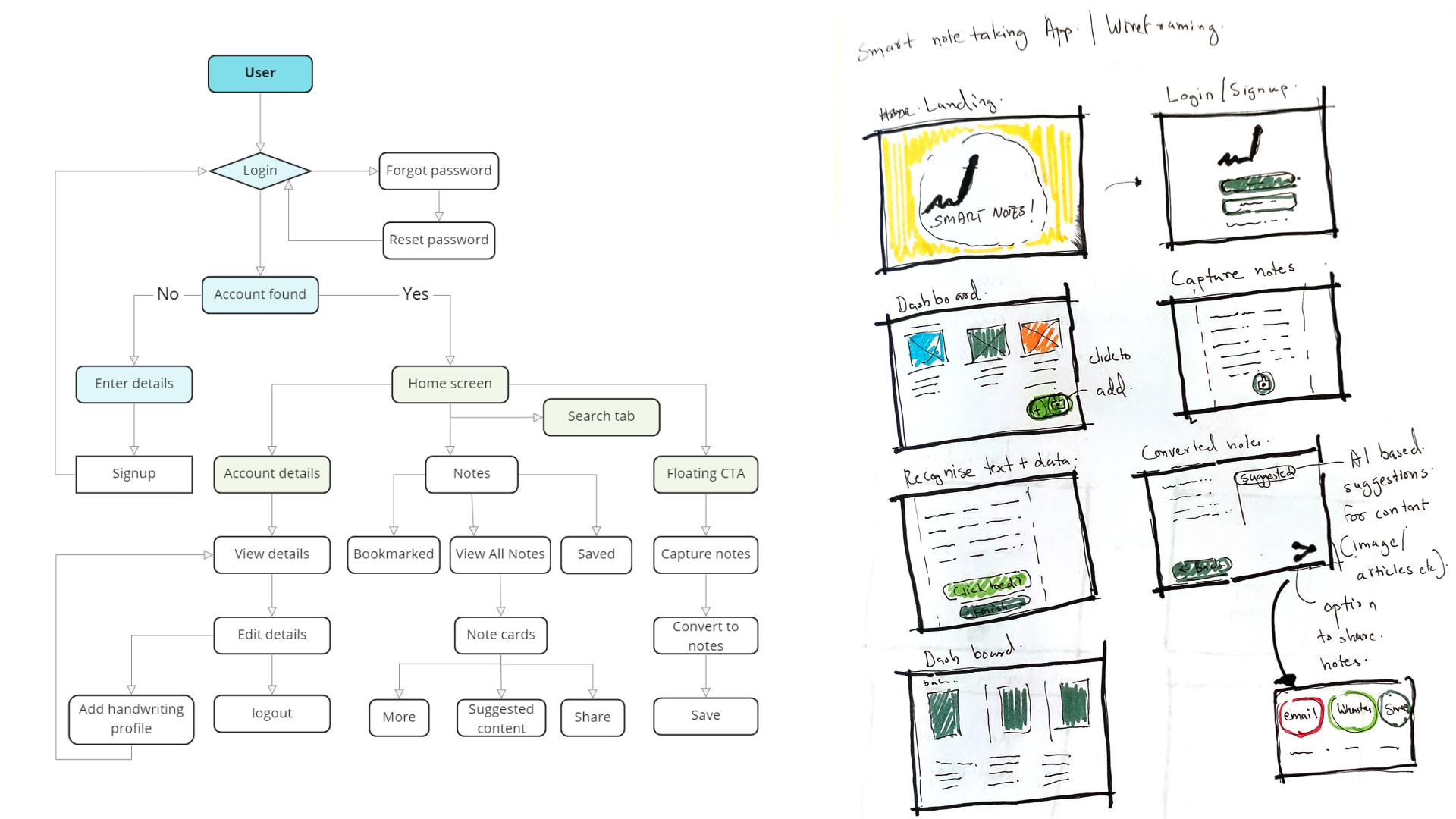 I proceeded to ideate and started sketching possible solutions based on the data from probes. At this stage, I also went back to three of the participants and had an informal discussion of design ideas. After discussing some of the design ideas with users, I found note-taking was a common activity and that it was mostly done manually. Most users preferred taking down notes on paper but had to go back and digitize them manually for reports or tests. To bridge this gap I decided to create an app that would help with digitizing notes based on text recognition.